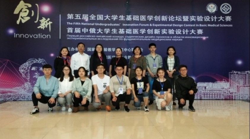 基础医学专业学生首次参加全国大学生基础医学创新论坛及实验设计大赛获奖合影(受访者供图)